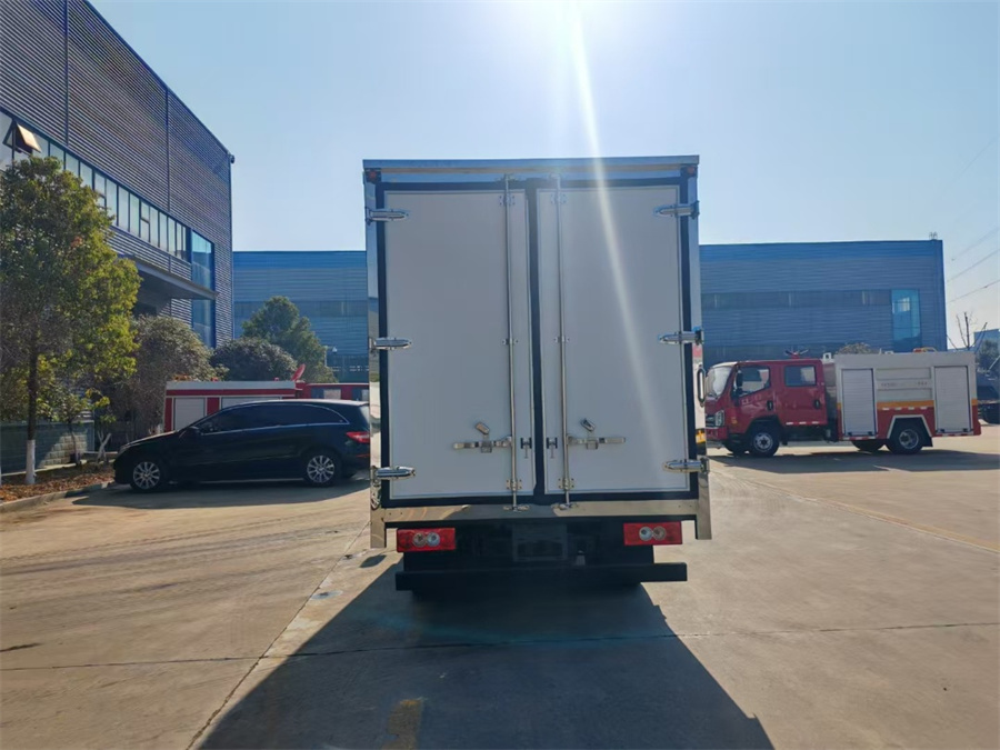 (3)廂體配件:廂體周邊鋁合金包邊,不銹鋼包角,不銹鋼門(mén)鎖鉸鏈,不銹鋼門(mén)框及合頁(yè),廂體內節能LED照明燈,后雙開(kāi)門(mén),側邊單開(kāi)門(mén)。